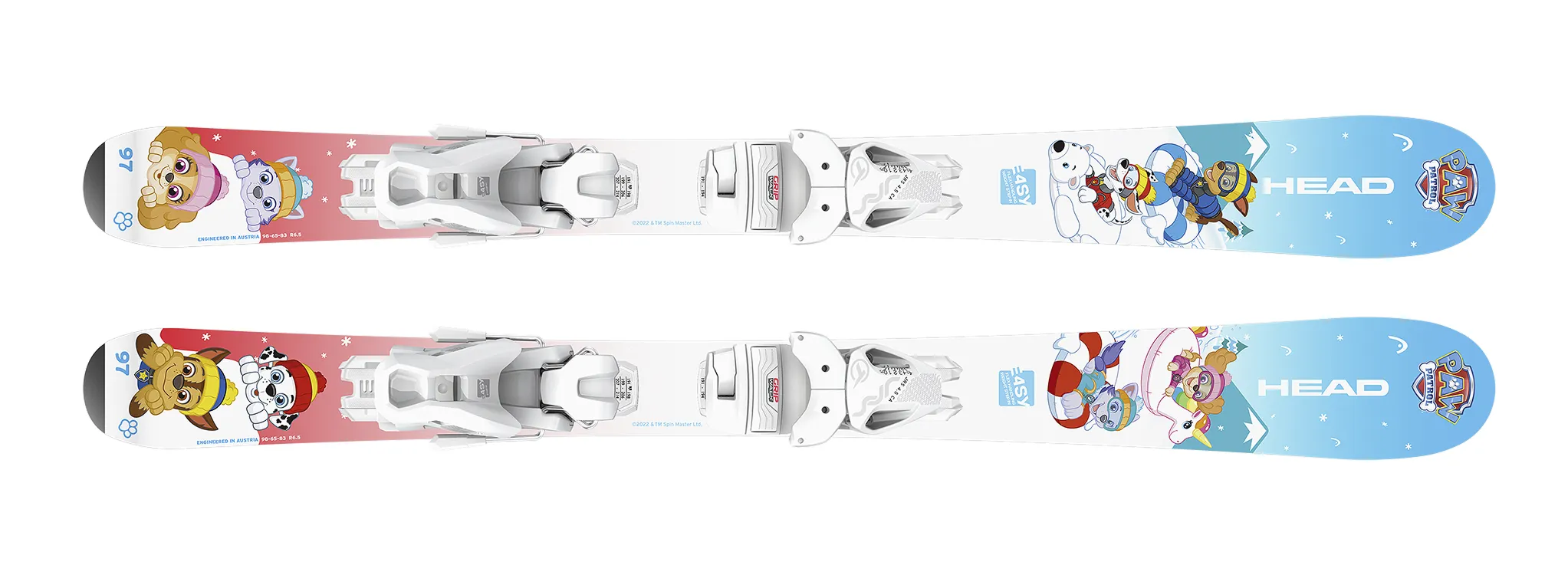 Новый горнолыжный комплект в популярнейшем дизайне мульт сериала Щенячий Патруль. Хороший выбор для младших любителей горных лыж, учащихся закладывать дуги на трассе. Короткий радиус поможет обучению правильным поворотам. Достаточная жесткость, обеспеченная силовыми волокнами, позволит отрабатывать стабильное ведение лыжи на твердом склоне. Легко ремонтируемая черная база и усиленная поверхность устойчивая к повреждениям. Новый удобный рельсовый интерфейс JRS и крепления JRS 7.5 на 15% легче прежних версий, а также удобнее при встегивании благодаря системе E4SY. Они позволят быстро настроить или перенастроить крепление под любой размер ботинка.